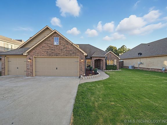 This Stunning Full Brick home in Carrington Pointe offers an open concept layout with soaring ceilings and elegant granite countertops in the kitchen. You'll love the spacious pantry and the cozy family room featuring a beautiful brick fireplace. Downstairs, there's a dedicated office complete with a built-in reading nook. The split-bedroom design provides privacy, with a luxurious master suite that includes an oversized walk-in closet and a spa-like bathroom featuring double vanities, large walk-in shower, and a separate soaking/whirlpool tub. Step outside to a peaceful covered patio and a fully fenced backyard - perfect for relaxing or entrtaining guests.