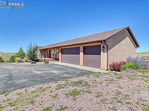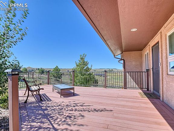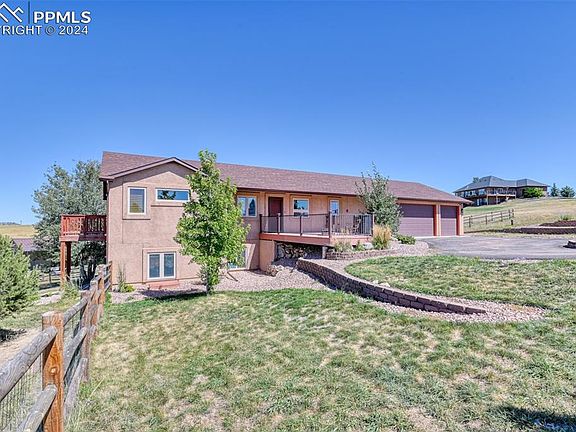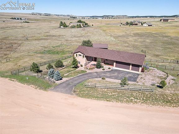 Are you yearning for serene wide-open spaces, luxurious amenities, and a perfect setting for entertaining, all while soaking in breathtaking views? Welcome to your private utopia, where you can enjoy the best of Colorado Springs' stunning sunrises and sunsets from any of your three decks. Nestled in a peaceful cul-de-sac bordering expansive open space and a tranquil community lake, this magnificent 5-acre estate offers unmatched serenity and privacy. The open-concept great room, adorned with solid wood floors and vaulted ceilings, provides a welcoming atmosphere for relaxation or lively gatherings. The upgraded kitchen, featuring a two-tiered breakfast bar and gleaming granite countertops, is a chef's delight, making meal preparation a pleasure. Retreat to the luxurious primary suite, complete with a private balcony, an elegant 5-piece bath, and a spacious walk-in closet with custom built-ins. Downstairs, the expansive family room invites you to continue the evening with its cozy fireplace and built-in wet bar, offering endless possibilities for entertainment and relaxation. Two additional bedrooms, each with walk-in closets, provide ample space and privacy for family or guests. The home's functionality is enhanced by a well-appointed laundry/mudroom with abundant storage, an oversized 3-car garage with a workshop area, 8-foot doors, and 220v hookups for all your projects. For equestrian enthusiasts, a 3-stall steel barn with power, water, and a tack room awaits your horses. Complete with automatic sprinklers and a garden drip system, your property backs up to community open spaces with extensive trails and a picturesque lake, perfect for leisurely strolls. All of this is just 15 minutes from the vibrant dining and entertainment scene of Colorado Springs. Don't miss your chance to own this exceptional property that seamlessly blends rural charm with modern convenience. Come and experience the lifestyle you've always wanted!