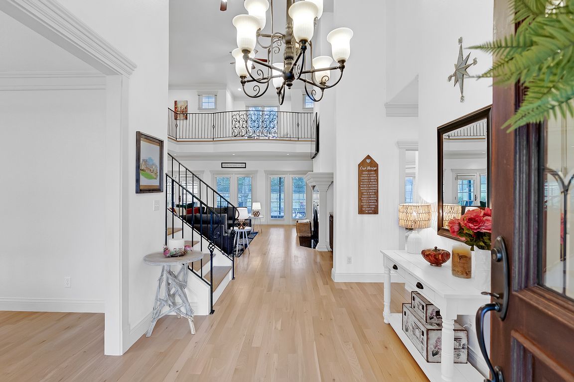 This home makes a statement the second you pull up — grand circle drive, gorgeous curb appeal, and nearly an acre of space in one of the most sought-after neighborhoods. Inside you’ll find 4 bedrooms, 4 baths, an office with a fireplace, formal dining, a huge living room, balcony nook, plus a ...