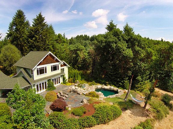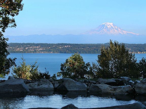 Once in a great while something very special comes along... Step into a custom home with stunning natural materials, full sun & breathtaking vistas of Puget Sound & Mt Rainier. The custom hardscape and natural stone pools w/ 5 acres of arboretum like grounds complete this island oasis. This 3 bedroom 2 1/2 bath home features an open floor plan with a chef's kitchen & views from all living spaces. Truly a special property.