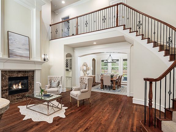 Fabulous Stonebridge Ranch home in highly desirable luxury enclave Wellington Point! Perfectly nestled in this beautiful subdivision on almost half an acre providing a resort level experience w-multiple poolside seating areas, firepit, outdoor kitchen + grill + large covered patio & huge grassy yard perfect for sports, play, pets, daydreaming &fun! Primary Bedroom & Guest Suite downstairs. Walking inside you are greeted with a private Office w- french doors, built in cabinetry & plantation shutters w-great views of the landscaped large front yard. Also off the entry is the Dining Room w-new chandelier & to the left a formal living, conversation or music room with soaring ceilings & fireplace w-gas logs. Spacious Primary Bedroom is on the back right of the home & transitions nicely away from everything else providing a true private retreat complete w-sitting area and views of the backyard. Primary Bathrm has separate vanities, soaking tub and walk in shower + large walk in closet. The Dining Room has been opened up to have access on either side of the Kitchen & Breakfast Nook. Entry into the Kitchen is preceded by a Butler's Pantry that provides a long granite countertop perfect for serving food, drinks or great prep space & has glass front cabinetry on top & bank of cabinets on bottom. The Kitchen has been updated with fresh paint, backsplash, cabinet paint+ hardware, and lighting. Breakfast nook is perfectly sized & provides sweeping views of the backyard oasis + patio and is open to the kitchen & family rm. Family Rm has a 2 story fantastic stone fireplace surround & is oversized allowing plenty of room for family and friends. To the left of the family room is the beautifully updated Guest Full Bath w-access to backyard, Family Rm & Guest Rm. 2nd staircase leads to the huge Game Room w-Half Bath, Media Room w-sconce lighting and 2 Guest Bedrooms that have been updated and are Jack & Jill Baths w-sep vanities. Both Guest Bedrms overlook the backyard. More below