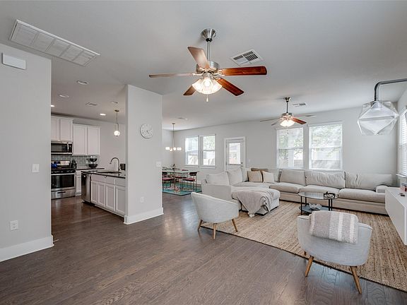 Modern 4 bed, 2.5 bath home in the heart of South Austin, minutes from the Menchaca Rd entertainment district where you'll find hotspots like Armadillo Den, Lustre Pearl South, and South Austin Beer Garden. Stepping through the front door, soaring ceilings greet you in the foyer. With wood floors, modern fixtures, and an abundance of natural light the main living area offers a warm and inviting ambiance while the open floor plan is perfect for entertaining. The spacious kitchen is equipped with a large center island, granite countertops, and stainless steel appliances. Extending the living space outside, the backyard features a covered patio perfect for al fresco dining or relaxing on a cool evening. Upstairs, a second living space makes a great game or media room or a private space for your morning Pelaton ride. The primary suite is a private retreat featuring an ensuite bath with a double vanity and walk-in shower while the three additional bedrooms are generously sized and share a bathroom with ample counter and cabinet space. Lawn maintenance is covered by the HOA for an easy lock & leave lifestyle.