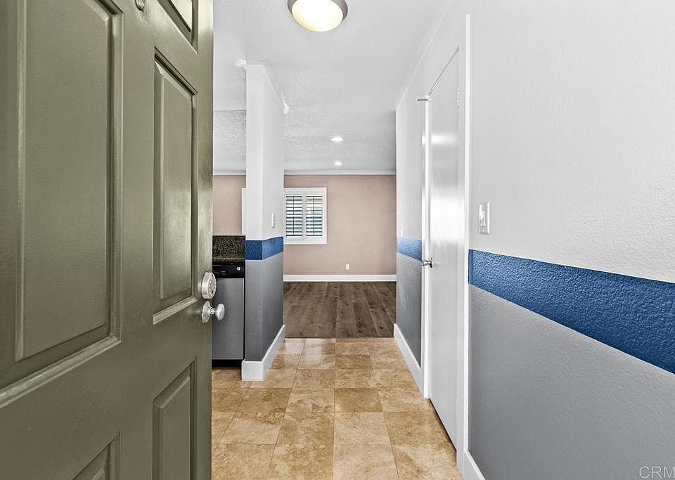 Welcome to Verano at La Jolla Colony! This beautifully upgraded 1-bedroom, 1-bath condo offers rare top-floor privacy with only one shared wall and excellent natural light. The open layout features travertine and luxury vinyl plank flooring, a modern kitchen with stainless steel appliances, in-unit laundry, and a private balcony perfect for relaxing or entertaining. Enjoy two assigned parking spaces (one garage, one open) and access to resort-style amenities including a pool, spa, fitness center, clubhouse, BBQ areas, and scenic trails. Located just minutes from UTC shopping, UCSD, La Jolla beaches, and major freeways, this home is ideal for first-time buyers, investors, or anyone seeking low-maintenance living in a prime location.