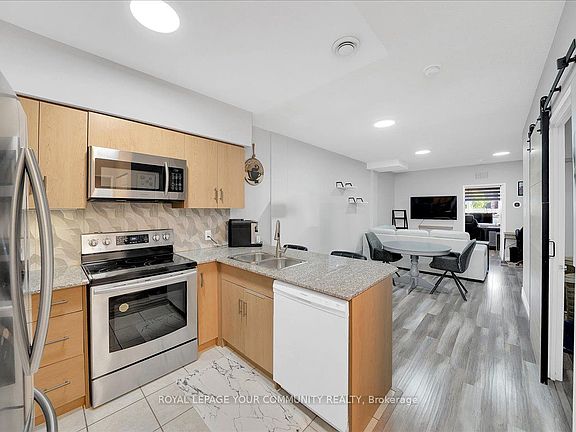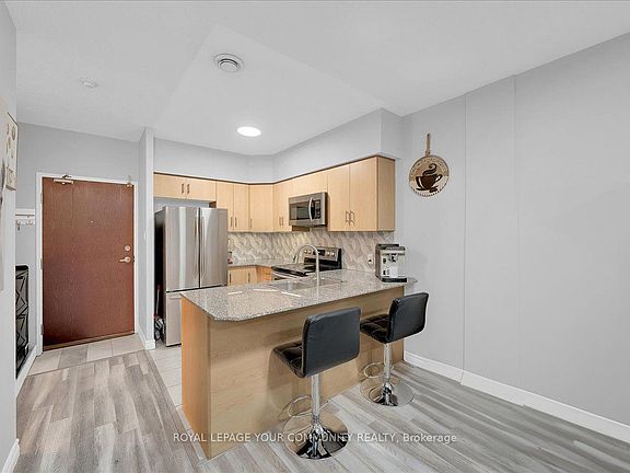 Welcome to this beautifully maintained ground-floor 2-bedroom condo at Malton Mansions! Featuring a modern kitchen with a stainless steel fridge stove, built-in microwave, and in-suite washer & dryer. Bright open-concept layout with al light fixtures, window coverings, and a two-seat patio swing included. Enjoy convenient main-level access with a private patio overlooking a park. Building amenities include a fitness centre, party room, and ample visitor parking. Steps to transit, Malton GO, Shopping Schools, and parks with easy access to Hwy 427, 401 & 407. A perfect blend of comfort, convenience, and community living.