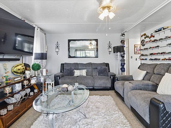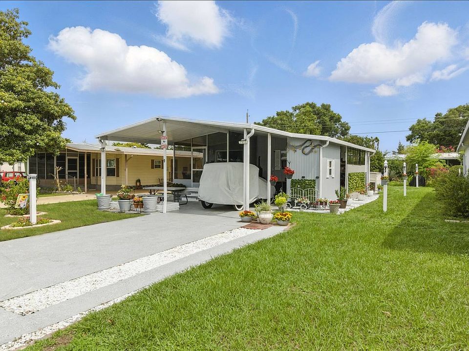 Welcome to your next chapter in Pine Ridge Estates, a vibrant 55+ community in North Lakeland! This spacious and well-cared-for 2-bedroom, 2-bathroom mobile home offers comfort, convenience, and an inviting lifestyle tailored for easy Florida living. Built in 1980, the home features a generous living area and a beautifully updated kitchen with sleek gray cabinetry, a modern tile backsplash, stainless steel stove, and easy-to-maintain laminate flooring-perfect for everyday living and entertaining. The primary bedroom is a peaceful retreat, complete with a walk-in closet and private en-suite bathroom, also featuring stylish gray cabinetry. The second bedroom is ideal for guests or can easily serve as a home office, hobby space, or craft room to suit your needs. Step outside and enjoy the benefits of thoughtful outdoor features, including a dedicated laundry shed with washer and dryer, plus two additional storage sheds-one a spacious 10x13 unit, ideal for tools, seasonal decorations, or workshop space. Neat, low-maintenance landscaping adds charm and curb appeal to the property. Recent upgrades include new air ducts for the AC system and a new hot water heater installed in 2022, giving you added peace of mind. With a monthly lot rent of $840.79, you'll enjoy water, sewer, and access to an abundance of community amenities. Pine Ridge Estates offers a clubhouse with a full kitchen, poker and billiards room, cards and games area, craft and social spaces, and a cozy library with book lending. Pet-friendly policies allow up to two pets under 35 lbs., making this a welcoming environment for animal lovers as well. Conveniently located near Lake Gibson, major highways, shopping, churches, and medical facilities, this home combines comfort, community, and convenience in one delightful package. Don't miss this opportunity to enjoy the best of Florida's 55+ lifestyle-schedule your showing today!