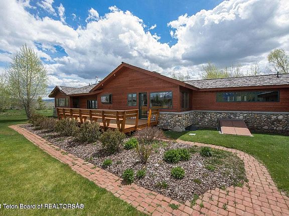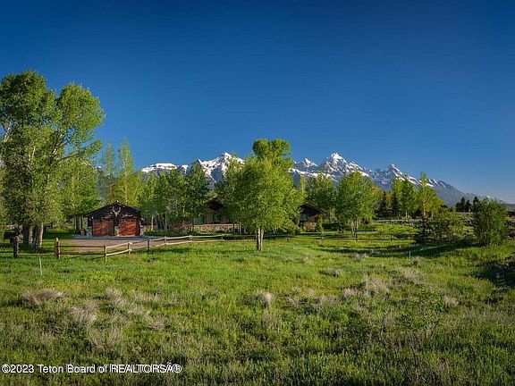 Bordering Grand Teton National Park with huge Teton views and water features. This custom home in Moulton Ranches sits on 2.6 acres and has full perimeter fencing. The 360-degree sweeping views include the Grand Teton and the Sleeping Indian. A great open floor plan and spacious rooms are found throughout the 3,652 square foot home. Complete with a gourmet kitchen, 3 bedrooms, a fully finished basement, separate caretaker/rental unit and lovely outdoor patio spaces.
