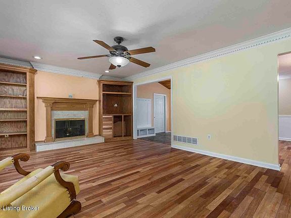 WELCOME HOME TO 7405 Ridan Way! Gorgeous 3 bedroom, 2 bath ranch with a partially finished basement, 2 car attached garage, lots of updates and located on a quiet cul-de-sac lot. From the front door, you will enter the spacious family room boasting a ceiling fan, wood burning fireplace, custom crown molding, beautiful built-ins and lots of natural light. The family room opens to a large kitchen with granite countertops, breakfast bar, custom cabinets, desk area, gas stove, stainless appliances and tile backsplash. There is a dining area with crown molding, built-in display case and French doors leading to a bonus/mud room. The mud room is adorable with built-in cubbies for coats and shoes, custom wood, vaulted ceiling and stone floor. The mud room has doors leading to both the garage and the back deck. The primary suite is on one side of the home and includes a ceiling fan, large closet, lots of light, updated private bath with steam shower, vessel sink and unique lighting. Two additional good-sized bedrooms featuring ceiling fans and large closets with custom built-in are located on the other side of the home. Rounding out the main floor is an updated full bath with a double vanity, granite countertop and whirlpool tub. The basement is partially finished and offers new windows, 2 new sump pumps, kitchenette, large family room, laundry and plenty of room for storage. As if this were not enough, other updates include inspection and new stainless liners for both fireplaces, wood flooring throughout main floor, new HVAC 2023, water heater that is professionally maintained every 6 months, Nest thermostat, Smart Q garage door opener, fresh paint and new recessed lighting throughout. This home is great for entertaining and family time! The outside is beautiful with an oversized, layered deck with built-in seating and garden boxes, 3 catch basing for rainwater, mature trees providing lots of shade and a full privacy fence. This home is in move in condition and is nestled in a quiet neighborhood only minutes from Iroquois Park, expressways, schools, shopping and great restaurants. You won't want to miss seeing this home, call today for your private showing!