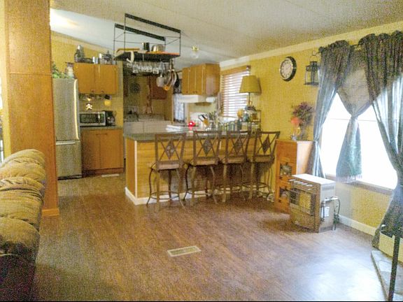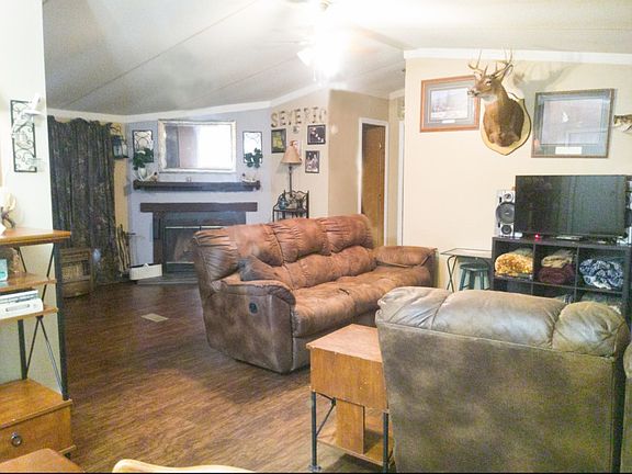 This retreat to the country is a 24 X 52 manufactured home on almost 2 acres of land. It features an open floor plan with 3 bedrooms and 2 full baths. It has a formal dining area and a wood burning fireplace in an open family room. The home has beautiful floors throughout with no carpet. There is plenty of space to roam and relax with a nice sized porch off the rear of the home. There are plenty of trees and a kennel on the back of the property. The acreage also features 3 storage buildings on site...10 X 16, 18 X 30, & 18 X 20.