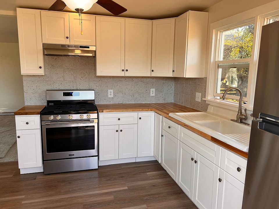 Central airGas heatNew kitchen cabinetsFresh paintNew appliancesButcher block countertopsNew carpet and flooring