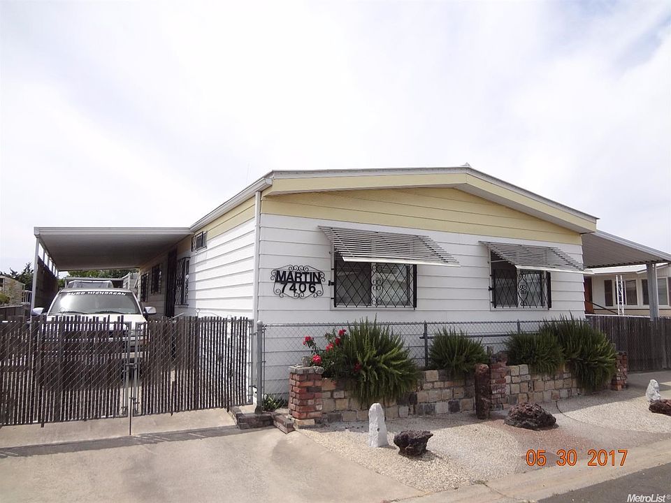 Immaculate and spacious 2bd/2bth mobile home located in a gated community on the owned lot - NO SPACE RENT! HOA $60/month - includes tennis court, large park, club house. No age restriction. 2 pets allowed (no more than 40 lbs each) Property has been remodeled - laminate flooring, newer AC and dual pane windows. 3 SHEDS. Outdoor sitting area with wet bar.