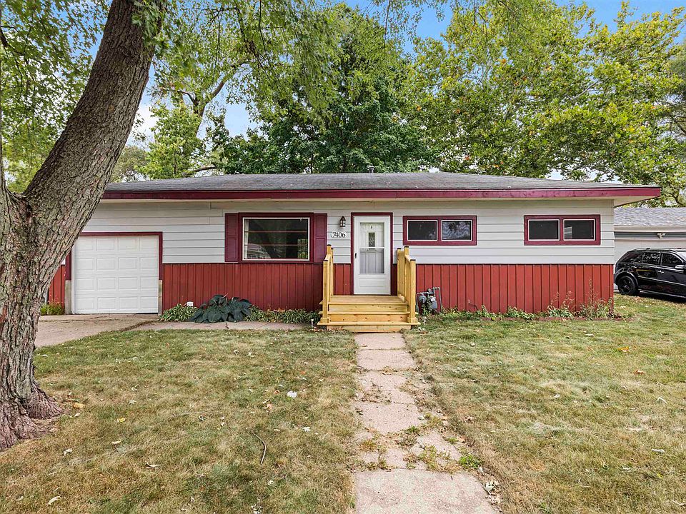 THIS CHARMING RANCH HOME HAS BEEN THOUGHTFULLY UPDATED AND IS MOVE-IN READY. With 3 bedrooms and 1 full bathroom, it offers comfortable living for a family or individuals. Step inside to discover the inviting interior featuring lovely vinyl plank flooring throughout, creating a modern and easy-to-maintain atmosphere. The entire house has been freshly painted, giving it a clean and fresh look. The addition of a new front porch enhances the home's curb appeal and provides a welcoming spot to relax. The spacious living room is filled with natural light, thanks to the nice big window, making it an ideal space for gatherings and everyday living. The kitchen boasts all white cabinetry, providing a clean and timeless look, and is equipped to meet your culinary needs. Outside, you'll find a fenced backyard with a shed and mature trees, offering privacy and a great place for outdoor activities. The 1-car attached garage adds convenience and storage space. Located in the highly desirable Harlem school district, this home is situated in a great location, providing access to quality education. Don't miss out on the opportunity to make this updated Ranch home your own!