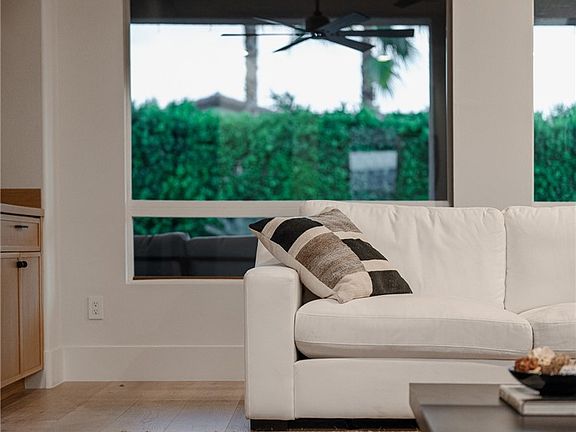 South-facing poolSleek tiled fireplaceAttached casitaWaterfall islandPrivate front courtyardTwo additional guest roomsSpacious primary suite
