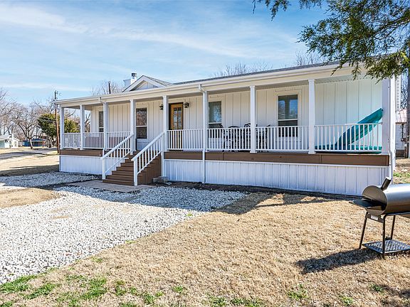 Enjoy peaceful lake living in this 2023 site-built modular home in Deep Water Point at Lake Lavon. Assembled onsite on a permanent foundation, this home offers the quality of traditional construction with the precision of modern manufacturing. Spanning approximately 2,565 square feet across two oversized lots, this four-bedroom, two-bath home features a smart split-bedroom layout and open-concept design with spacious living, dining, and kitchen areas at the heart of the home. The kitchen showcases stone countertops, a large island, solid wood cabinetry, and stainless steel appliances, offering abundant workspace and storage. Luxury vinyl plank flooring flows throughout, and large picture windows fill the home with natural light. A stacked stone fireplace anchors the great room, while glass-paned doors enhance the connection between indoors and out. The primary suite offers a generous bedroom, a walk-in closet, and a spa-like ensuite bath with dual sinks, a freestanding soaking tub, a frameless glass shower with dual showerheads, and a private water closet. Each secondary bedroom includes a walk-in closet, and a shared full bath is conveniently located off the hallway. A dedicated utility room with built-ins adds everyday convenience. Built for comfort and efficiency, the home includes 2x6 exterior walls with R-19 insulation, R-30 attic insulation, energy-efficient Low-E windows, and a programmable thermostat. A 24.095 kW solar panel system, installed in 2023, was designed to offset most of the home’s energy needs, producing over 32,000 kWh in its first year. Outdoor living shines with a full-length front porch overlooking open space and water. The level double lot provides room for gardens, pets, recreation, or future expansion. Furnishings negotiable. Minutes to Rockwall, Wylie, and greater Dallas, this move-in-ready home offers a rare opportunity to own a spacious, energy-conscious site-built modular home with style, comfort, and room to grow.