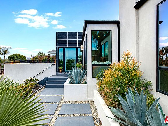This Streamline Moderne residence located on The Hill in Playa Del Rey has been re-envisioned by Jose Antonio Gonzalez of JAGAR ARCHITECTURE, a well-known LA-based architectural firm. The 4 bedroom, 4 bathroom property boasts an open concept design with luxurious finishes and attention to detail. Upon entering the home, you are greeted with a formal entry that leads to a lounge living room. The living room flows seamlessly into an open gourmet kitchen featuring a custom island with bar seating, high-end stainless steel appliances, and ample storage. The kitchen also features modern fixtures and finishes, making it an ideal space for entertaining guests. Adjacent to the kitchen is a formal dining room with a gas fireplace, perfect for hosting dinner parties. The breathtaking great room features soaring ceilings and a floor-to-ceiling wall of glass folding doors that open up to the swimmers pool, pool house with full kitchen and bath with outdoor shower, outdoor dining area, and garden space, providing an abundance of natural light and a seamless indoor-outdoor living experience. The spacious primary suite is a true retreat with an impressive primary bathroom featuring stylish finishes and a freestanding soaking tub, perfect for relaxation after a long day. Two additional guest bedrooms and 2 full bathrooms round out this chic modern home, providing plenty of space for guests or a growing family. Located just moments away from the beach, dining, shopping, bike and walking paths, this home is an ideal location for those who enjoy the Silicon Beach lifestyle. This masterfully designed home is a true gem and an exceptional example of luxury living.