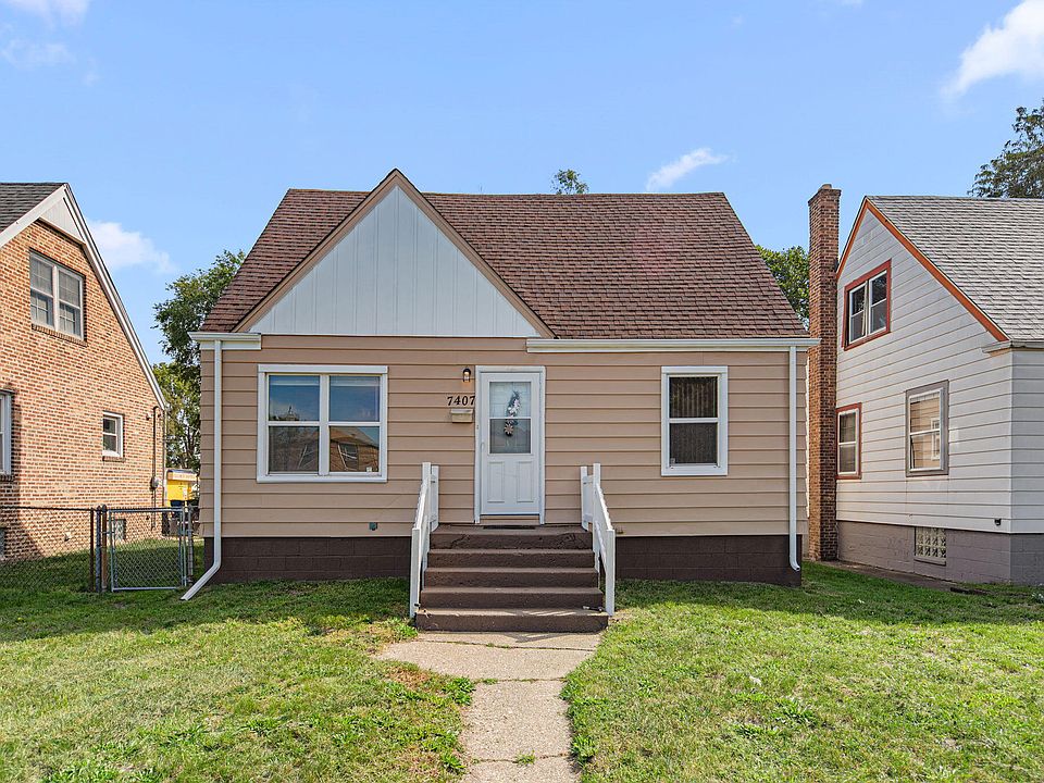 South Hammond cape cod features convenient main level bedroom and full bath! Eat in kitchen with built in china cabinet and formal dining room right off kitchen. Walk upstairs to office den area and 2 additional large size bedrooms with huge closets. Great location! Close to the train station! Perfect starter home or investment! Spacious floor plan includes full basement. Tiled foyer entrance. Professionally painted exterior 2025! Updated water heater 5 years. Updated bathroom in great condition! Potential living area in semi finished basement with 3/4 finished bathroom. Large laundry area includes sink. Deep lot that is partially fenced with concrete patio. Enjoy backyard entertaining and large enough for a future garage. Being sold as is. 13 Month Home Warranty included! Taxes will be reduced once exemption is filed! Tax credit given at closing. Convenient location to express way and Chicago. First time home buyers programs available. Needs some TLC to make it your ideal home. Don't wait set up your showing today!