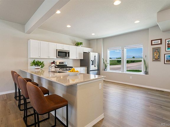 Welcome home to this immaculate property situated on a corner lot with picturesque mountain views adding a scenic backdrop to your everyday living. The main level of this bright and airy home features an open floor plan filled with natural light, seamlessly connecting the living area to the stylish kitchen. Take in the beauty of the Pike's Peak from the counter seating, while the kitchen features modern stainless steel appliances and stone countertops. A conveniently located laundry, large pantry, and half bath round out the main level. Upstairs offers three spacious bedrooms plus another full bath, and versatile loft area. The views of the front range from primary suite are unparalleled and make this room a retreat of luxury! This includes a large walk-in closet, attached bath with walk-in shower, and double sink vanity. The lower level offers a second living space, or a great home office with built-in bookcases making a perfect additional entertaining space or the room to work from home. A two-car attached garage completes this thoughtfully designed home. You simply won't find a better lot, with more exceptional views, in a more convenient location. Come see it for yourself!