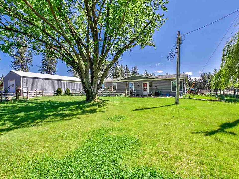 Great Horse Property on a quiet paved road with easy access to Spokane. This well appointed M/H has New Vinyl Siding & Hot Water Heater, Roll In Showers. Includes a 30x60 shop/hay storage plus 24x10 lean to. 2 large paddocks with metal loafing shed w/power. Round Pen, Fully Fenced and Crossed Fenced as well as the front & back yard. Circular Driveway with plenty of parking for your toys, trailer or RV. 40 GPM per well log. A Home Warranty is included as well. This is a must see!