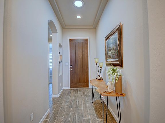 Welcome HOME! The seller is offering assistance with a rate buy-down and a Home Warranty. This stunning Mediterranean single-story home in the desirable Trails Neighborhood blends modern luxury with comfort. You'll be greeted by a spacious great room that flows into a gourmet kitchen with a bar-seating island, nice pantry, upgraded cabinetry, beautiful granite countertops, a stylish tile backsplash & built-in appliances. The primary suite offers a spa-like retreat with a garden tub, luxurious walk-in shower, dual sinks & a generous walk-in closet. Enjoy your private backyard, perfect for entertaining, featuring a covered patio, wood-burning fireplace with no neighbors behind! Additional highlights include a 3-car garage, stylish window blinds, refrigerated air & upgraded lighting.