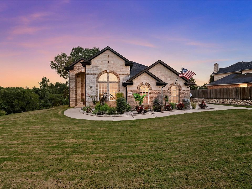 Truly the most hidden gem in Fort Worth, it's a must see. Nestled at the end of a serene cul-de-sac, this stunning 4-bed, 3-bath home is a masterpiece of modern updates on a quarter-acre lot, bordered by a tranquil creek and lush greenbelt. Step inside to gleaming hardwood floors and a fully remodeled kitchen featuring custom cabinets with Flemish glass, shadow storm marble countertops with a matte leather finish, and a Bertazzoni commercial gas range with convection oven. New custom windows frame breathtaking views of trees, wildlife, and vibrant sunsets. Upgrades include a 2023 HVAC, 2019 water heater, 2021 category 4 roof, and chic light fixtures. The eat-in kitchen boasts added square footage, while the Romabio-painted brick fireplace and custom TV built-in elevate the living space. Crystal door knobs with sideplates add timeless elegance. Upstairs, enjoy vistas of Eagle Mountain Lake in winter. Next to 83 acres of trails, disc golf, and Eagle Ranch Park with a duck pond, playground, and pavilion, this home offers luxury and nature in perfect harmony.
