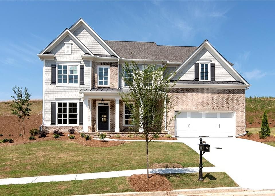 The Hawthorne Plan - New construction by Tipton Homebuilders. 5 Bed/4 Bath home with Kitchen open to Family room, features quartz counter tops, double ovens, stainless steel appliances, oversized chef’s island. Coffer ceilings in Family room, brick fireplace with built-ins cabinets. Guest suite w/ attached full bath on main, formal dining room and separate study/office. Primary suite upstairs with spa like bath featuring quartz double vanity, separate shower, soaking tub and large walk in spacious closet. Three additional secondary bedrooms one w/a bath, other two share a bath. Many beautiful upgrade options throughout. Convenient location to Lake Lanier, Mall of GA, restaurants and 985. This neighborhood has the ultimate amenities, pools, tennis courts, lake, exercise room, movie theater and much more! Home is move-in ready!!!