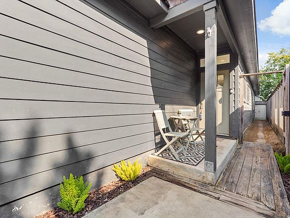 Charming 2-bedroom home with a covered porch and bright, open layout designed for comfort and style. Luxury vinyl plank flooring flows through spacious living and dining areas, while the kitchen shines with bold blue cabinetry, quartz countertops, stainless appliances, walk-in pantry, and overhead pot rack. The primary suite offers recessed lighting, a custom walk-in closet, and spa-style bath with dual quartz vanities, coordinating blue cabinetry, and a frameless glass shower with subway tile and mosaic accents. A versatile second bedroom is perfect for guests or a home office, paired with a sleek full bath nearby. Smart upgrades include programmable lighting, Nest thermostat, and Ring cameras. Out back, a private, low-maintenance yard with a tall privacy fence is perfect for relaxing or entertaining. All just minutes from Downtown, the Medical Center, and major freeways, with cafés, restaurants, and shops just a short stroll away.