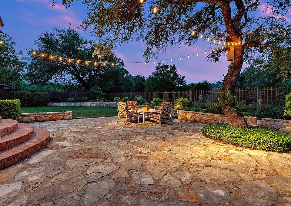 This stunning Circle C home backs to the greenbelt, with extensive outdoor entertaining area and landscaping. Peaceful street with low traffic. Roomy 1st floor with open kitchen, dining, living room, master suite and additional bed/bath. Additional 2 bedrooms, bath, and 2nd living room upstairs. Recent kitchen updates include: new quartz counter tops, up/down cabinet lighting, tile back splash, and gas cook top. Plantation shutters throughout. Ample attic storage.
