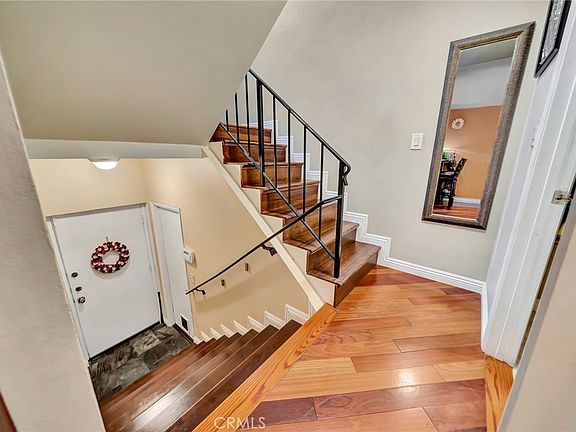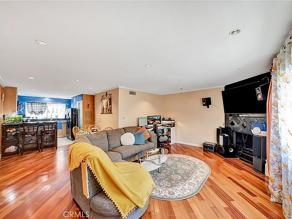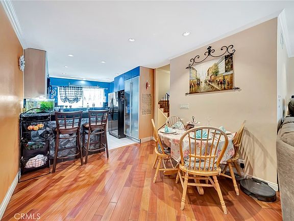 This beautiful, spacious unit is located in the heart of Van Nuys city where Marilyn Monroe used to live, in a tranquil and secure complex. Plenty of space for comfortable living, entertainment, and enjoyment. Private attached garage for two cars with direct access to the first floor and laundry in the garage. There you will find bright and open living room with large windows providing lots of natural light. Beautiful hardwood floors on the first floor and staircase, crown moldings, recessed lights, and neutral, calming wall colors add nice touches to the interior. The dining area and kitchen are located right next to the living room for an open concept, perfect for family gatherings. Custom kitchen has Italian blue cobalt cabinets with translucent glass doors, granite counter tops, tile floor, lots of counter and cabinet space, and a useful breakfast bar. Updated guest bathroom is conveniently located on the first floor and has a full shower with beautiful tilework. Both good size bedrooms are on the second floor and feature laminate floors, large windows and generous mirrored closets. Second bathroom is updated with double sinks. This fantastic home has many desirable features that provide maximum comfort and relaxing living environment. The sought after complex is quiet and secure with plenty of greenery, pool, and spa as well as low HOA fee. Close proximity to Ralph's, Starbucks, McDonald's and transportation. Entertainment makes this property a great choice for anyone with a short distance to Universal Studios, Hollywood and public beaches as well as Six Flags.