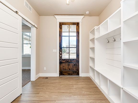IronWood Homes brings you our custom home offering openness and grandeur. Indulge in all the comforts of this home inside & out with any of the uniquely crafted spaces and expansive patio. Leathered granite slabs throughout, over chocolate soft close, dove tail cabinets with Satin Nickel hardware. Kitchen features stainless appliances with double oven convection gas range & convection microwave, pantry, Large laundry studio with mud bench with sound insulation on the interior walls master retreat offers an exceptional bath with a super custom dual headed shower, ex-lg vanity with dual sinks, jetted tub, private toilet, linen closet and a large master closet with lots of built-ins. Interior tray ceilings with recessed lighting and crown molding, fireplace, garden tub in the guest bath with built-ins in all the closets All flooring is upgraded, quiet, waterproof click and lock floors, and thick high quality carpet. 2x6 fully insulated (walls & ceiling) garage, oversized 3rd bay or shop space for the hobbyist, shop lights, ext garage door. Call for more information about the interior & exterior of this extraordinary home! Exterior • Cement siding with extensive rock work • 40 year arch roof • Energy efficient windows • Full front sod and sprinklers • Patio door w/built-in blinds Dallan Woods Sub • Community pool • Parking • Walking path • Greenbelt access