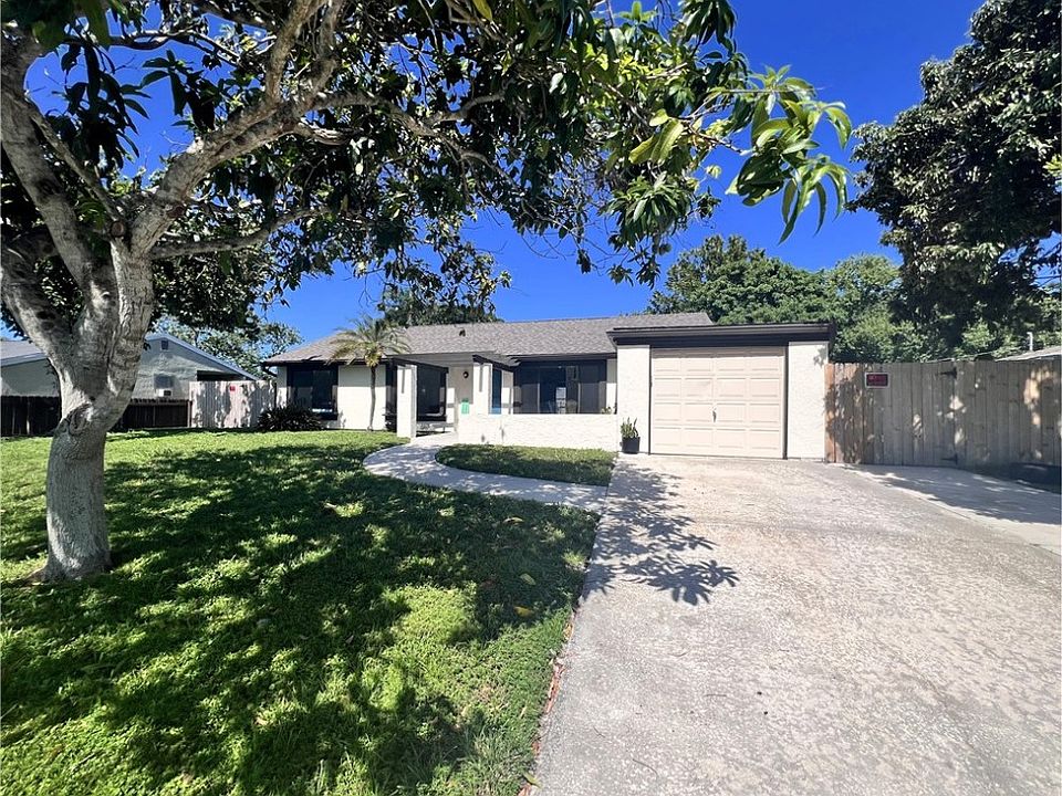 Port Malabar Paradise Step into your tropical retreat! This renovated 3-bedroom, 2-bath pool home offers a sparkling screened pool, covered lanai, and a lush yard with vibrant landscaping and fruit trees. Inside, the updated kitchen features white shaker cabinets, subway tile backsplash, quartz counters, stainless appliances, and a wet bar—ideal for entertaining. Enjoy luxury vinyl plank flooring throughout, upgraded baths, newer fans and fixtures, plus a new water heater and 2022 roof. Complete with a 1-car garage and central Port Malabar location—this home has it all.