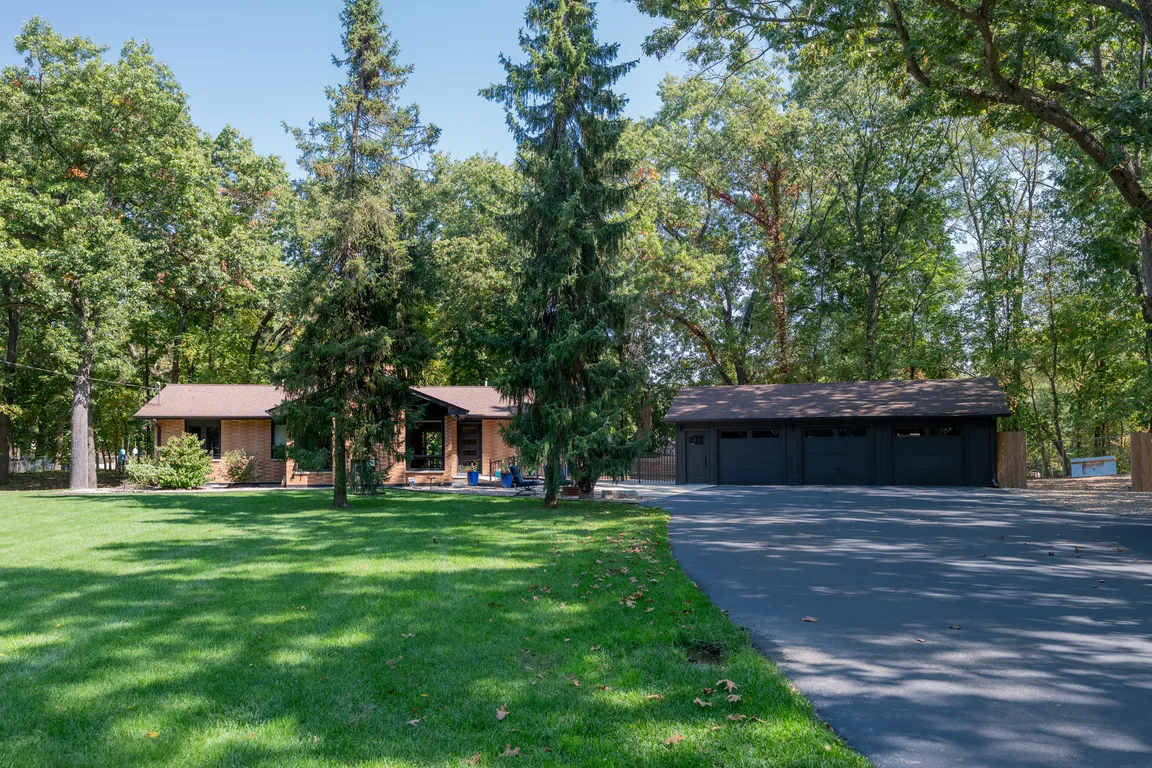 Welcome to this beautifully updated ranch walkout, situated on 3.29 park-like acres in the heart of Portage. This property blends modern updates with timeless character. The main level features a striking living room that feels like a work of art—vaulted ceilings with wood plank walls and ceiling, expansive windows framing ...