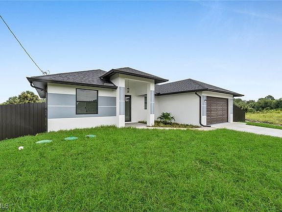 Brand-new 2025 construction in Lehigh Acres, perfectly located near Highway 82 for easy access to shopping, dining, and commuting. This stunning home is move-in ready and sits on a fully fenced lot, providing privacy and security. Featuring modern finishes, open-concept living spaces, and a spacious layout perfect for families or entertaining.