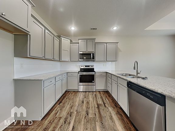 Welcome to a charming and spacious home at 741 Captain Stockton Street, offering 1728 sq ft of comfortable single-level living. This inviting residence features three bedrooms and two bathrooms, providing ample space for family and guests. The open-concept layout includes a bright living room that flows into the dining area and a modern kitchen, which is fully equipped with a suite of stainless steel appliances. The primary bedroom is a true sanctuary, featuring an en-suite bathroom with a double sink vanity and a convenient walk-in closet. Two additional well-sized bedrooms and a full bathroom complete the sleeping quarters, providing plenty of space for family or guests. Additional features include a dedicated laundry room with washer/dryer hookups, an attached two-car garage, and a fenced backyard, perfect for outdoor activities. This is a smart home, outfitted with a smart lock and a smart hub for added security and convenience. This property is located just off E Heritage Parkway and is only minutes from I-49, ensuring an easy commute and quick access to local amenities. Contact us for more information about this attractive property.