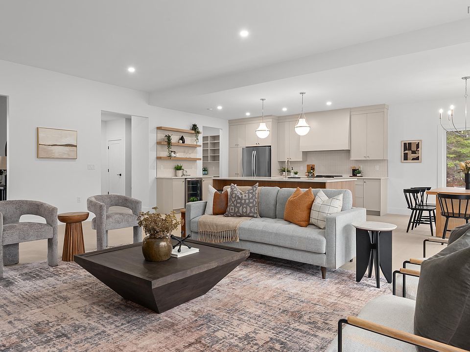 Now fully complete, professionally staged, and move-in ready, 741 Celebration Drive is a home that welcomes you in and invites you to stay awhile. Tucked into the newest phase of Kinloch Estates, this beautifully designed story-and-a-half home pairs thoughtful craftsmanship with everyday comfort. It sits on a rare walkout-at-grade lot with a flat, well-treed backyard that’s perfect for playing, lounging, or dreaming up that future pool. The main-floor primary suite offers a quiet retreat, complete with a walk-in closet and spa-like ensuite. The heart of the home is open, bright, and designed for connection. The kitchen features soft cashmere and warm wood toned cabinetry, veined quartz, and a large island made for conversation. An oversized walk-in pantry keeps the mess tucked away, while an 8-foot double sliding door fills the space with light and creates a seamless indoor-outdoor flow. This layout was made for real life, with a dedicated office, oversized laundry room, and a generous mudroom off the side-entry garage to keep things functional and organized. Upstairs, three additional bedrooms offer flexibility for family, guests, or hobbies. One oversized room is perfect as a second living space, playroom, or studio. A large bathroom with a separate shower and toilet area adds convenience. The builder has recently sweetened this offering by including a full appliance package and adding extensive landscaping, making this home truly turnkey. Throughout the home, you’ll find white oak engineered hardwood, custom millwork, a wood-accented fireplace, curated lighting, and refined finishes that feel warm and welcoming. Comfort comes standard with in-floor heating in the bathrooms and mudroom, a fully ducted heat pump, and hot water on demand. All of this, nestled within the well-established Kinloch community — surrounded by top-rated schools, lakes, parks, and everyday amenities. This is a home where you can truly settle in, stretch out, and build something special.