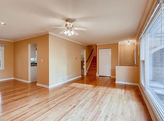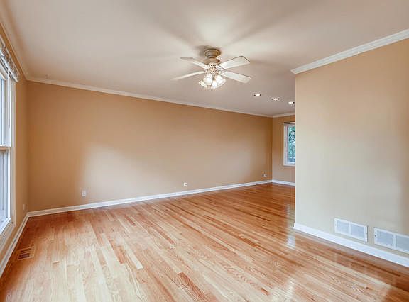 Excellent split level home with finished sub basement set on a fenced landscaped lot. Hardwood floors throughout. Redone kitchen white cabs and Overlooks lower level family room. Brick wood burning fireplace. Entrance to 2 car gar. Blinds, ceiling fans and recessed lites thru out. Newly painted light and bright. Updated baths. Rec rm w/ tons of storage. Great area & home in the great Stevenson High school district.
