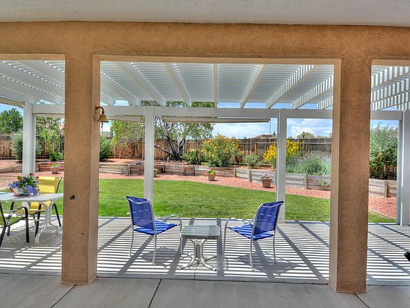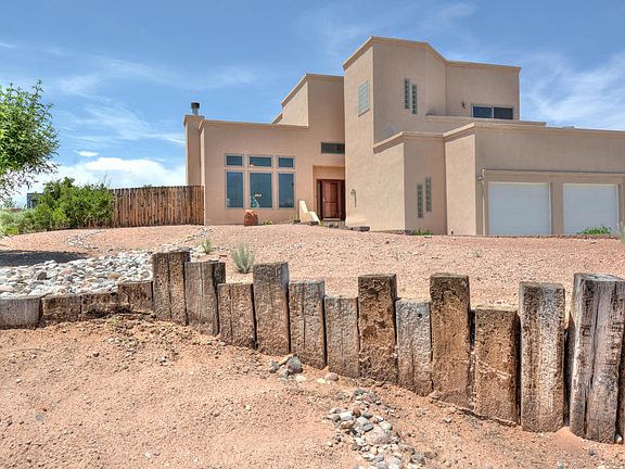 Custom 2 story Southwest Style beauty located in Rio Rancho Estates on a half acre! With 2,930 sq. ft. this home has 4 bedrooms, 3 full bathrooms and 2 living areas. Fresh paint throughout and upgraded granite countertops in the kitchen and baths! The formal sitting area hosts a center fireplace and 3 large windows showcasing the magnificent views of the Sandia Mountains! Gourmet kitchen with an abundance of upgraded cabinets, granite countertops, center island with a built-in wine rack, built-in desk/work space and a breakfast nook. Large master with a balcony overlooking the mountains. The master bath hosts a large jetted tub, separate shower and double sinks. Enjoy sunsets from the covered porch, extended pergola and fully landscaped back yard. This home is truly a beauty!