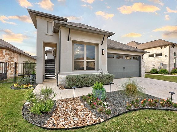 Welcome to 741 Faith Dr, an exquisite Sitterle home in the gated section of Santa Rita Ranch—one of Liberty Hill’s top master-planned communities. This meticulously maintained single-story home offers 3 bedrooms, 2 bathrooms, and 2,046 sqft of stylish living space on a 0.188-acre lot with unobstructed Hill Country views. Built in 2021 with exceptional upgrades throughout, the open-concept layout features beamed ceilings, wood-look tile flooring, and a sleek black stone fireplace. The gourmet kitchen includes stainless steel appliances, a gas cooktop, shaker cabinets, and a large center island. The spacious primary suite boasts hilltop views, a custom walk-in shower, dual vanities, and upgraded tower cabinetry. Two additional bedrooms provide flexibility for guests or office space. Enjoy the expansive covered patio with a built-in outdoor kitchen, ceiling fans, TV, epoxy flooring, and motorized shades—perfect for year-round entertaining. The fenced backyard offers gorgeous panoramic views. Extras include an epoxy-coated garage with built-in storage, full irrigation system, and HOA-maintained yard and sprinklers. Residents also enjoy amenities like resort-style pools, parks, trails, and a fitness center. Located in Georgetown ISD, this home combines luxury, low-maintenance living, and a stunning setting in a vibrant community. All all details and information to be confirmed by Buyer and/or buyers agent.