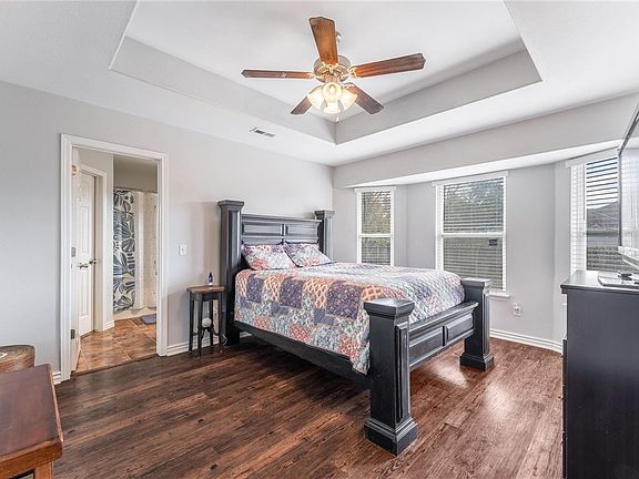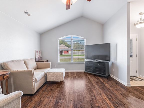 Charming 3-bed, 2 bath home minutes from everything Prairie Grove has to offer. This home offers an amazing updated split floor plan with a fresh coat of paint and new wood vinyl plank flooring through the main area and primary bedroom. From the entry way you are greeted with vaulted ceilings are tons of great natural light from all the windows. The kitchen has been updated with granite countertops and has upper and lower cabinets along with a pantry for all your kitchen storage needs. Step out on to the covered back patio to find an oversized fenced backyard. Sitting on a corner lot in a great neighborhood with a park for children, walking trails, and a dog park steps away. You will not be disappointed with this one!