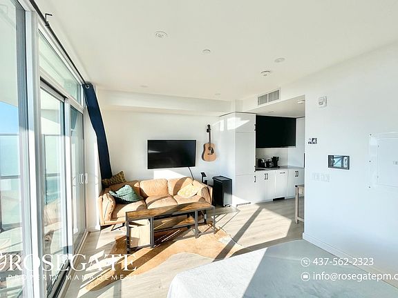 Studio condoOpen-concept layoutSleek modern kitchenUpdated finishesWell-appointed bathroomLarge windowsNatural light