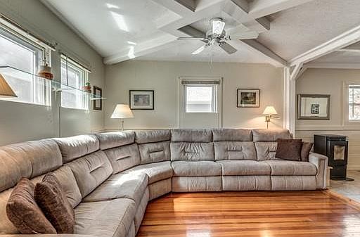 - Liv Dscrp: Flooring - Hardwood, Open Floor Plan, Ceiling Fan(s), Ceiling - Beamed, Wood / Coal / Pellet Stove