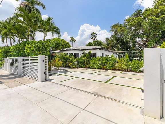 BRAND NEW POOL!! Beautifully renovated Mid-Century 3BR/2BA bungalow blends timeless charm with modern luxury. Light-filled open layout features a gourmet kitchen with terrazzo counters, new cabinets/appliances, custom closets, motorized Somfy shades, 86" LG & Samsung Frame TV, plus updated plumbing & electrical. Outdoors, enjoy a heated pool with sun deck, Traeger smoker, Nexgrill BBQ, bistro area & professional landscaping with pathway lighting. Secure gated entry with motorized gate, DoorBird access, Ring cameras, smart A/C, Lutron lighting & EV charging. Spacious driveway for 5 cars. Option to purchase fully furnished. Steps from Biscayne Bay parks, top schools, dining & shopping, this home offers style, comfort & convenience. Come see it today!! Showings are easy.