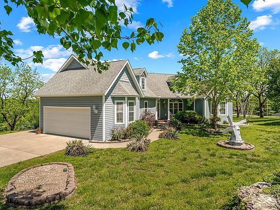 Nestled in the charming Walnut Springs subdivision of Cape Fair, Missouri, this custom-built home offers a blend of comfort and convenience. Featuring 4 bedrooms, 3 1/2 baths, an office/bonus room, storage area, and a second kitchen, it's designed to accommodate modern living needs.Relax and enjoy the expansive back deck overlooking a little over a total of 4.4 acres of picturesque landscape. The home sits on a 1.93 acre parcel with an additional parcel measured 2.47 acres. Additional storage shed conveys with property. There is ample space for outdoor activities and expansion.The neighborhood provides residents access to a secure storage area for boats and RVs. And you are just a short drive away from the courtesy private dock and boat launch! Perfect for lake enthusiasts. The community also includes amenities such as a playground area and a library box. There are great dining options just minutes away such as Flat Creek restaurant. The nearby Cape Fair Marina offers even more opportunities for lake recreation.With its proximity to Branson's attractions, this property provides a perfect balance of comfort and accessibility, ideal for those seeking a serene yet connected lifestyle.Sellers are offering a $5000 seller concession for flooring! Call your favorite agent today and get your private lake oasis before it's gone!
