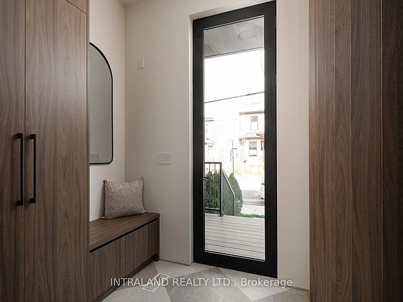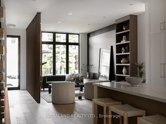 An undeniably exquisite luxury residence that offers a palpable sense of arrival and sophistication , this 3-storey detached dwelling is an architectural masterpiece in the heart of the city. The open-concept main floor is an entertainer's dream, defined by light hardwood floors, soaring ceilings, and a custom floating steel and oak staircase that serves as a sculptural centerpiece. A gourmet chef's kitchen features a massive island, high-end integrated appliances, and a wall of floor-to-ceiling glass that seamlessly merges indoor and outdoor living. Ascend to the private quarters, where the primary retreat awaits with a spectacular 5-piece spa-like ensuite, a massive custom walk-in closet with integrated lighting, and serene views. The home culminates in a truly breathtaking private rooftop terracea sprawling oasis complete with a hot tub and spectacular, unobstructed 360-degree views of the CN Tower and city skyline. This property is not just a home; it's a rare statement of modern luxury, offering a lifestyle of unparalleled comfort and style in one of Toronto's most vibrant neighborhoods