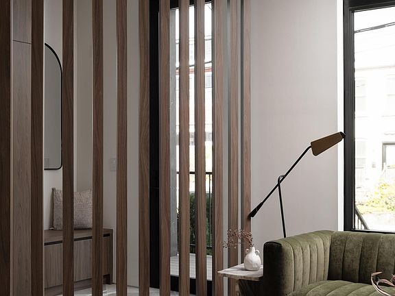 Open-concept main floorLight hardwood floorsSoaring ceilingsMassive islandHigh-end integrated appliancesFloor-to-ceiling glassPrivate quarters