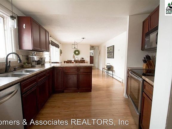 Beautiful, Hill top 5 Bedroom, 3 Bathroom home available! - This lovely, 5 bedroom hilltop home is now available for rent! Right off of Lakloey Rd, this beautiful and bright home has an amazing valley view, accompanied by a large back deck, a well manicured front and back yard, and even a small fenced in area for any potential pets. Inside you will find a large living room featuring many windows for natural lighting and pellet stove to help with fuel costs in the winter. The kitchen is has an updated open concept, a breakfast bar, and comes fully loaded with all stainless steel appliances- stove/oven, dishwasher, microwave, and even a smart refrigerator. On the top floor you will find the master bedroom, plus 2 more bedrooms and an office. Downstairs is where the extra living space and 2 more bedrooms are located, along with access to the 2 car garage. Rent is $2300/month with water included. Tenant is responsible for heating fuel and electric. Pets OK upon approval with higher deposit. To schedule a showing, contact Nicole Lawrence at Somers & Associates 907-456-7653 (RLNE4947063)