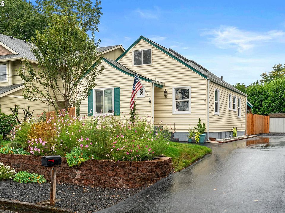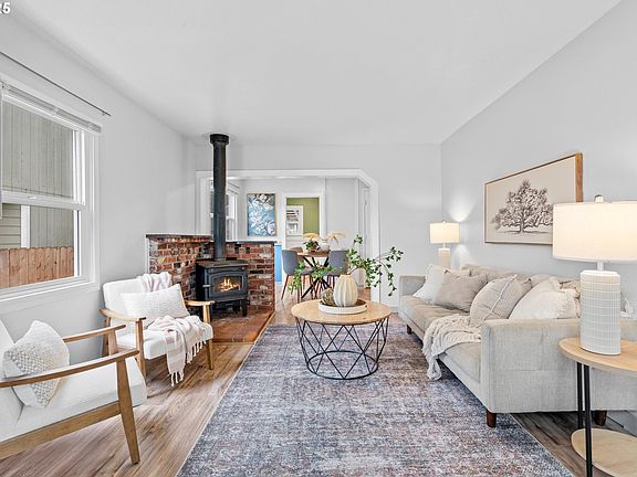 Delightful Camas Cottage combining original charm with modern comfort, ideally located close to downtown, parks, and top-rated schools. The main level features 2 inviting bedrooms and 1.5 baths with new tub, sink, and toilets, plus a third (non-conforming) bedroom upstairs—perfect for guests, office, or flex space. You’ll love the bright kitchen with slab granite countertops, new SS appliances, and a glass-top range with convection oven/air fryer options. A cozy dining area connects easily to the living room, creating a warm, welcoming flow. The woodstove will keep you warm & comfortable all winter long.The finished basement includes a washer and dryer, plus dry storage space for added functionality. Step outside to a fully covered back patio for year-round enjoyment, complete with firepit and fenced yard featuring edible gardens ready for your harvest. Updates include forced air heat and central A/C (approx. 5 years old), roof (approx. 10 years old), partially updated water lines, new vapor barrier, and waterproofing. The newly asphalted shared driveway provides convenient parking.Full of character and thoughtful upgrades, this home offers the perfect blend of comfort, charm, and location—just minutes from all the best Camas has to offer!