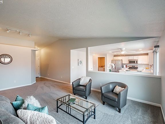 Single level, with new paint, flooring, quartz better than new construction! Nice size bedrooms. Primary suite set in back of home. Vaulted living space open to kitchen & dining. Kitchen hosts quartz eat-in bar, SS appliances. Indoor laundry room, tucked just off kitchen. Backyard with large deck for entertaining, fully fenced, overlooking natural setting!