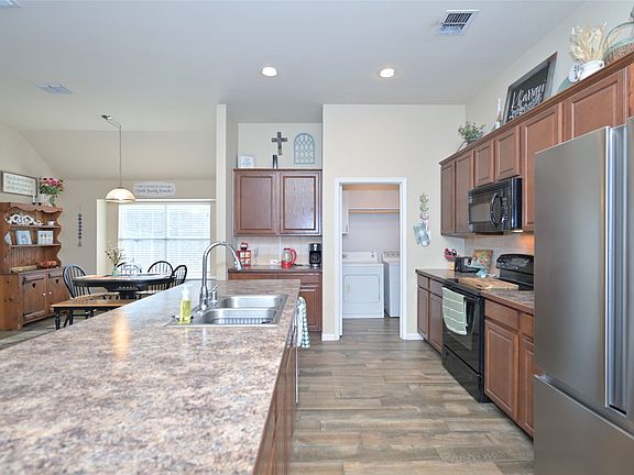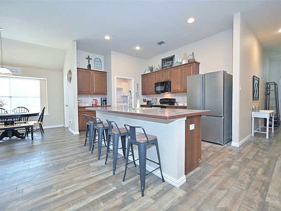 BEAUTIFUL open concept 3 Bedroom, 2 Bath Burleson Home in West Bend South backing to Frazier Elementary with no neighbors directly behind!! Claudia's amazing Community Playground right down the street with downtown Fort Worth, numerous Shops and Dining all near by! 2024 Outside AC Replaced! Gorgeous carpet free floors in main living areas and Bathrooms, exterior Solar Screens, Gutters and insulated two car Garage Door! Huge 24 x 12 covered back Patio, perfect for family gatherings, delicious BBQ's or just enjoying your morning coffee. Large Chef's Kitchen with four seat Island, loads of cabinet and counter space, 2025 updated faucet and garbage disposal. Smooth top electric stove, built in microwave, Dishwasher and five shelf walk-in pantry. Kitchen opens to both Dining and spacious Living area with a back wall of windows and door leading to big covered back patio and large 6 ft. privacy fenced backyard. Full sized Laundry room with cabinets and drip dry rod. Nice split Bedroom arrangement with the main Bedroom located at the rear of the home with an en-suite Bath, garden tub, separate shower, two sink vanity, large double racked walk-in closet and built-in storage shelves. Nice sized secondary Bedrooms and closets with front Bedroom making a great optional in-home Office. Living and all Bedrooms have ceiling Fans too! Brick and stone front elevation, nicely landscaped front yard with two shade trees and more in a well established Community!! Schedule your viewing today to see this lovely Home!!