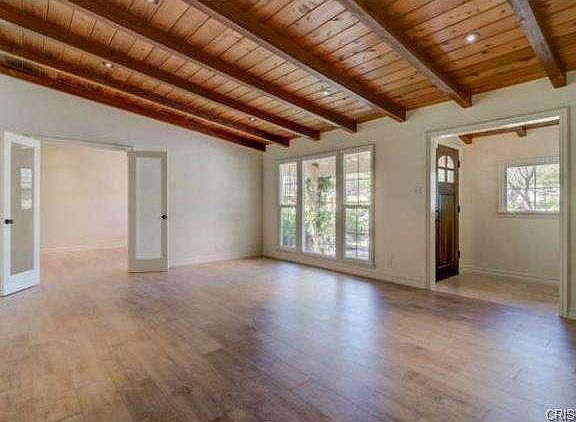 Beautifully remodeled home with the most stylish upgrades throughout. This desirable one story floor plan features 4 bedrooms and 2 bathrooms (4th bedroom can be an office or bedroom). The home has newly updated dual-pane windows, new Chef's Kitchen with Energy Star top-of-the-line stainless steel appliances, new bathrooms, new flooring, new paint inside and out, new A/C and Heating, new tank-less water heater, and new LG stackable Steam Washer and Steam/Gas Dryer. The elegant master bedroom suite has a private master bath with jacuzzi tub and double walk-in closets. Glass French Doors open to the large private picturesque back yard with mature landscaping, numerous trees, roses and fountain. A wood beam covered patio includes a gas BBQ hookup for family and entertaining. Garage is insulated with attic and vinyl plank flooring with recessed lighting. Garage has been converted with attic, flooring, insulation, and wired for surround sound.