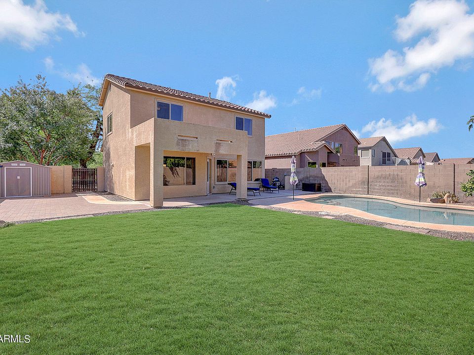 Nestled in the heart of Sierra Verde community, this beautiful 4 bed, 2.5 bath home offers the ideal blend of comfort and convenience and a new roof as of 2020! Located across from a lush neighborhood greenbelt park and just minutes from schools and easy freeway access. You step inside to a welcoming den which can serve as a home office, play room or living area with soaring ceilings and a view of the greenbelt, creating an inviting and airy atmosphere. The family room seamlessly flows into the eat-in kitchen, which features stainless steel appliances, updated cabinets, breakfast bar, walk-in pantry, and plenty of space for gathering. along with a convenient half bath. Pool motor only a few years old, and cool decking refinished in 2023! (click more) The light-filled primary suite boasts bay windows, dual sinks in the bathroom, and walk-in closet. Step outside to your own private backyard oasis with sparkling pool and lush grass. Do not forget about the additional bonus area off the family room! The community is filled with scenic walking and biking paths. Don't miss out on the chance to make this prime location your home!