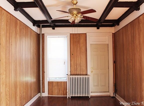 Newly laid out floors, brand new eat in kitchen, upgraded bathroom, End row house with window, access to large open back yard, Walking distance to J train station and close to supermarket. Tenant pays electricity and gas.